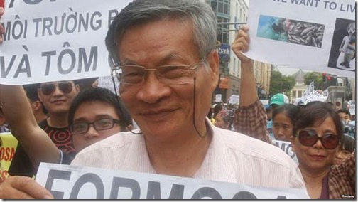 Tiến sĩ Nguyễn Quang A trong một lần biểu tình phản đối Formosa tại Hà Nội.